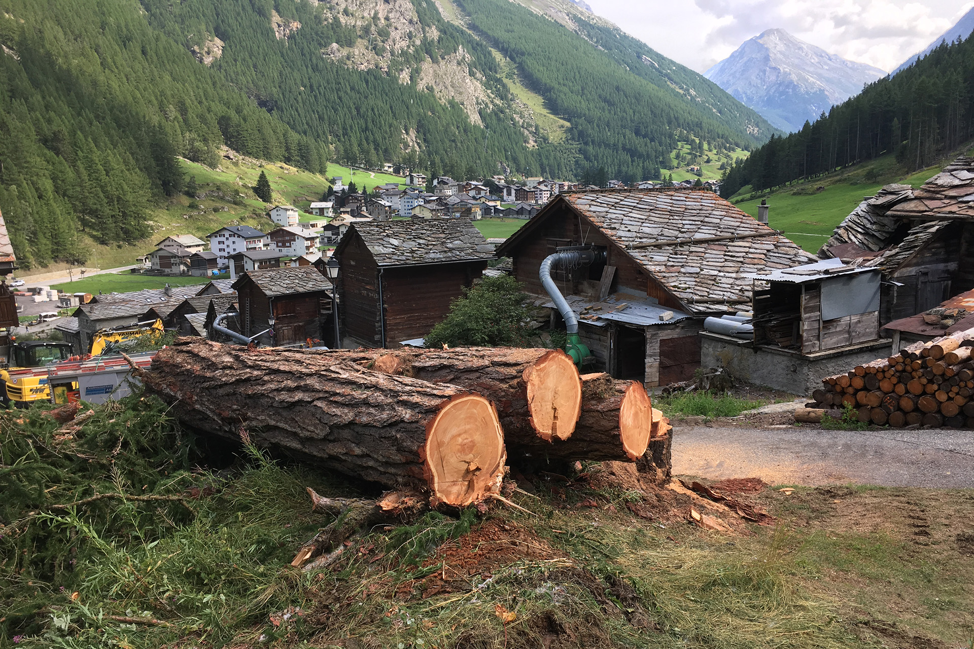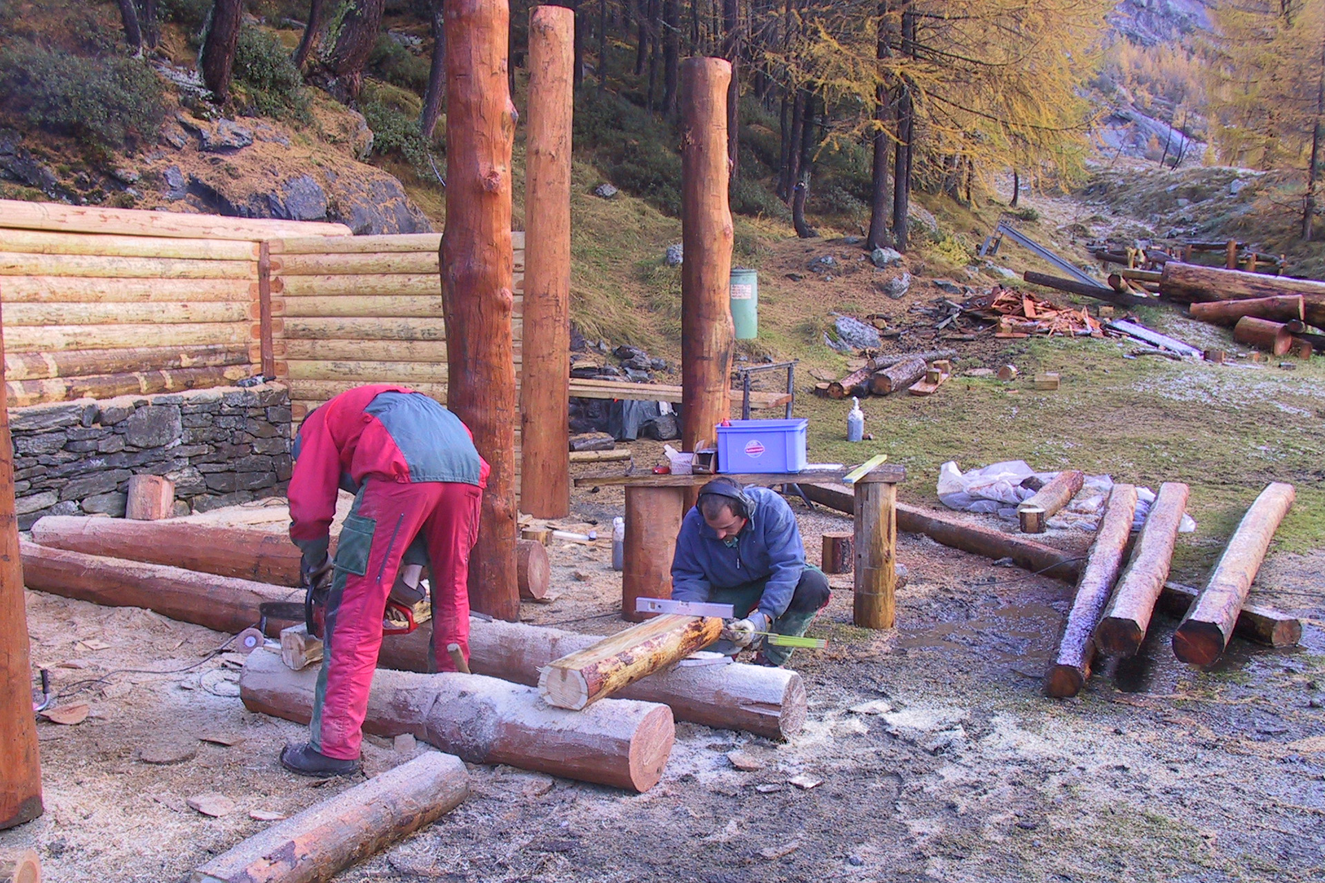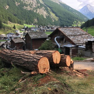 - Lärchenlatten in Rinde, 13 bis 15cm Ø, CHF 7.00/m